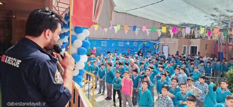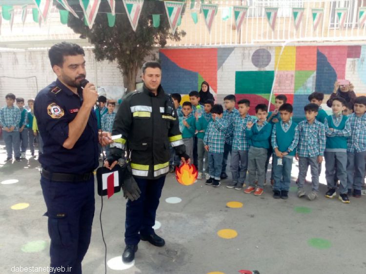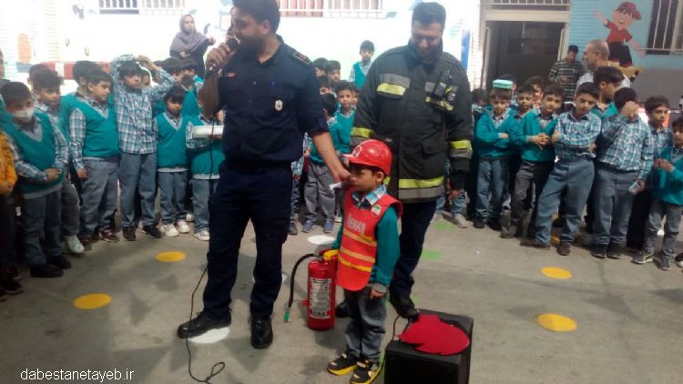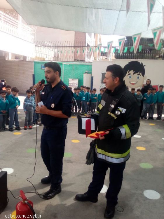 حضور آتش نشان به مناسبت روز آتش نشان و آموزش موارد الزامی به دانش آموزان |